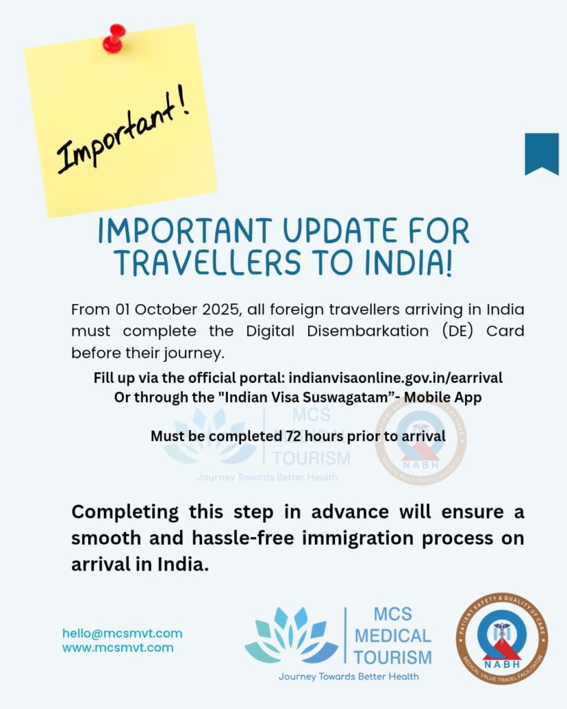 From 1 October 2025, all foreign travellers arriving in India must complete the new Digital Disembarkation (DE) Card before their journey. This mandatory step ensures faster immigration clearance and a smooth arrival experience at Indian airports.